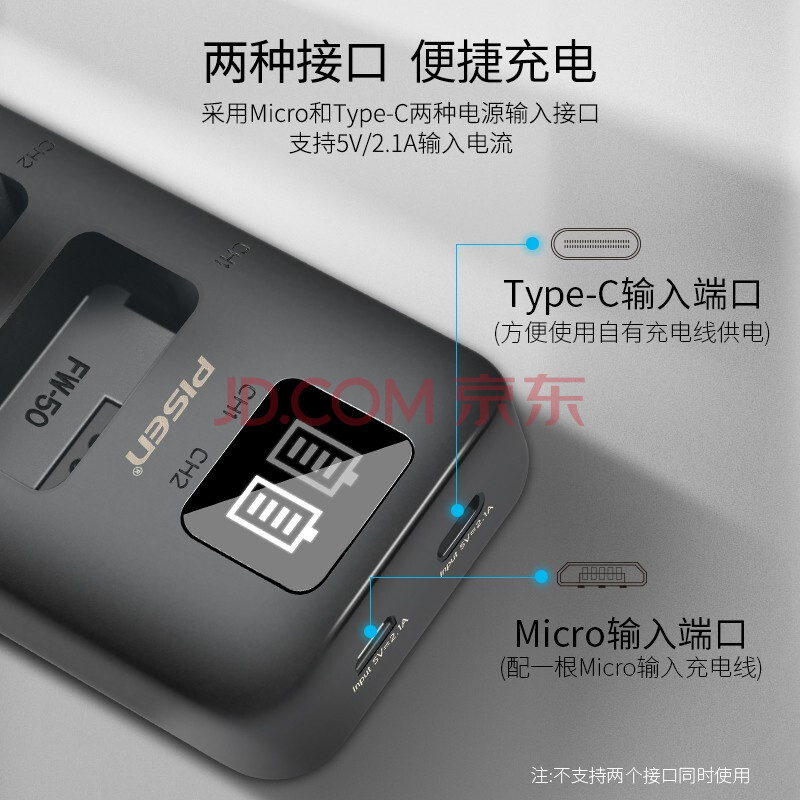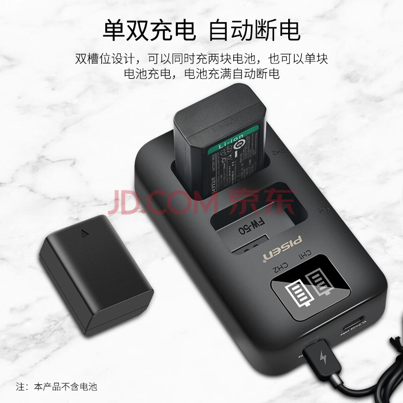 商品相册:品胜索尼FW50相机电池充电器 适用A6000 A5000 A5100 A6300 A7RII单反相机双槽座充电第