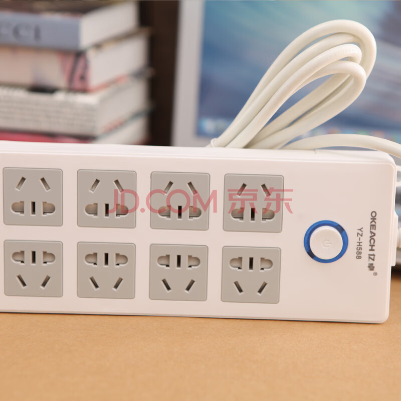 商品相册:亿卓(OKEACH)插座插排插线板排插开关插座转换插头拖线板 新国标电源插座YZ-H588白色全长2.8米第