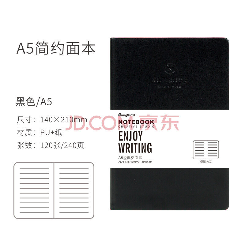 商品相册:广博(GuangBo)A5/120张商务皮面本笔记本子记事本时尚经典简约皮面本办公会议记录 黑色GBP20002第
