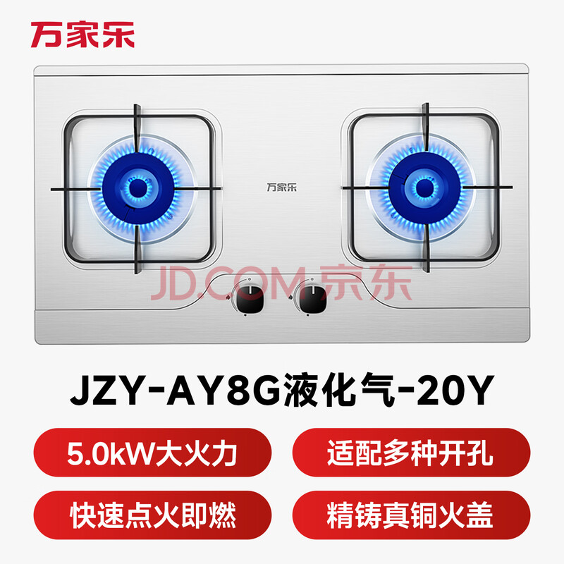 商品相册:万家乐燃气灶【双高火AY8G】5.0kW大火力液化气不锈钢防爆灶煤气灶具家用台嵌两用快速点火灶第