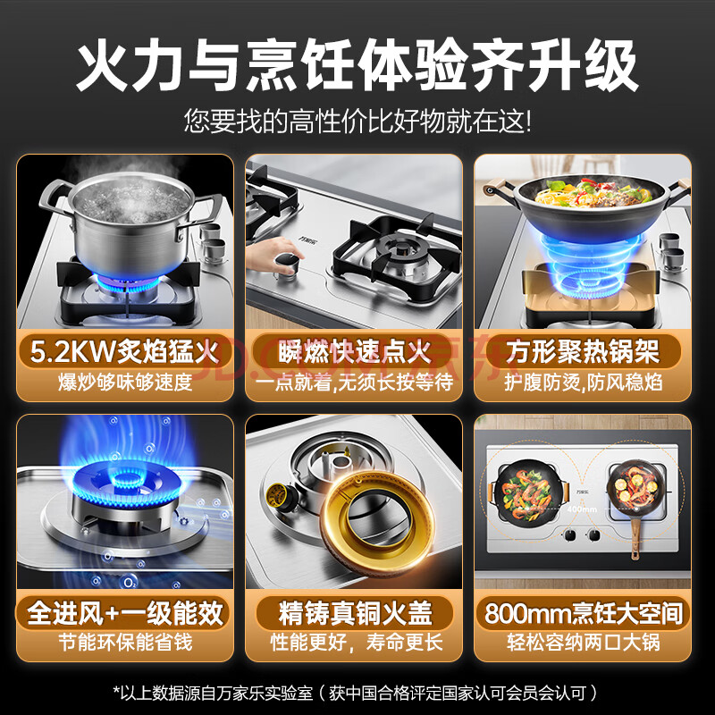 商品相册:万家乐燃气灶【双高火AY8G】5.2kW大火力不锈钢猛火灶台防爆燃气灶具家用台嵌两用双灶天然气灶第