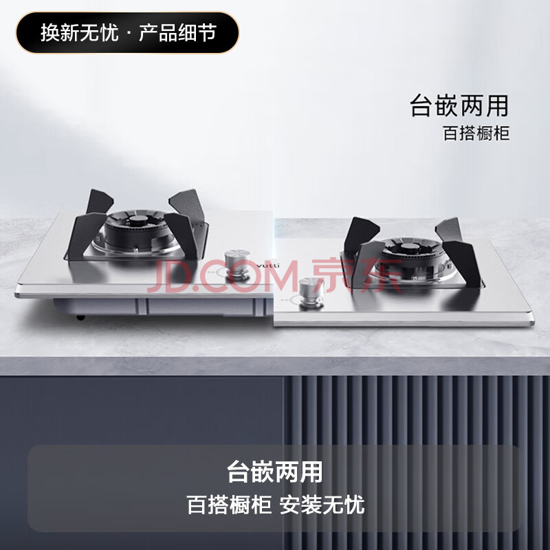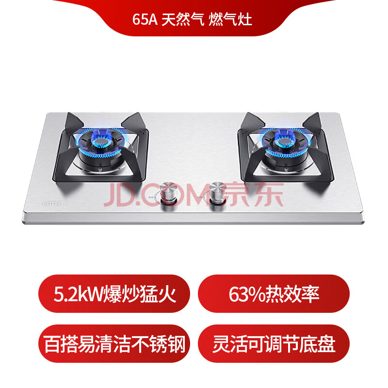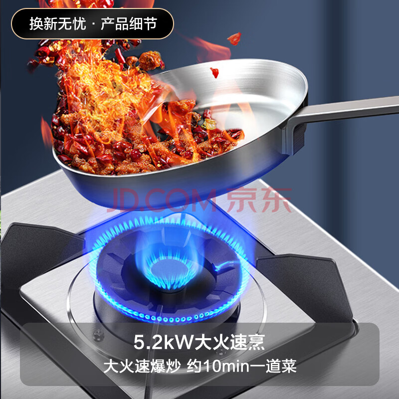 商品相册:华帝官方不锈钢燃气灶煤气灶嵌入式双灶5.2kW猛火灶具灶台i10065A【天然气产品】第