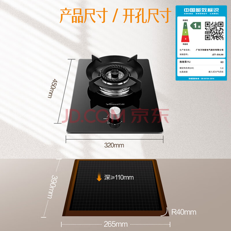 商品相册:万和【E6L90·单灶】5kW天然气猛火一级能效63%热效率家用煤气炉具台燃气灶第