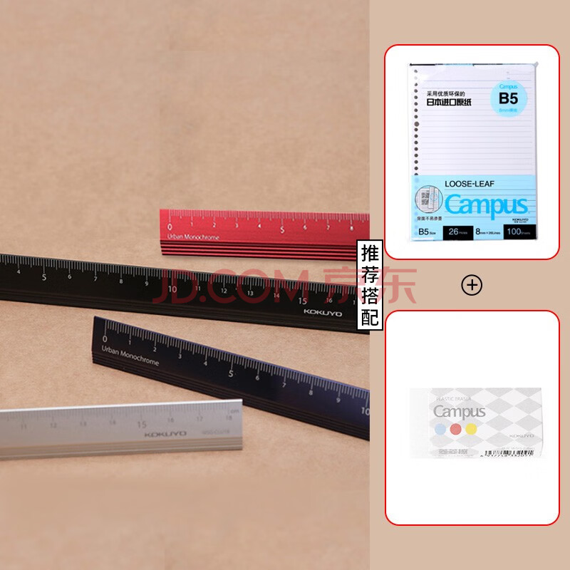 商品相册:国誉(KOKUYO)都市印象学生高考铝制直尺(18cm)190×20.6×5mm黑色 1个装 WSG-CLU18D第