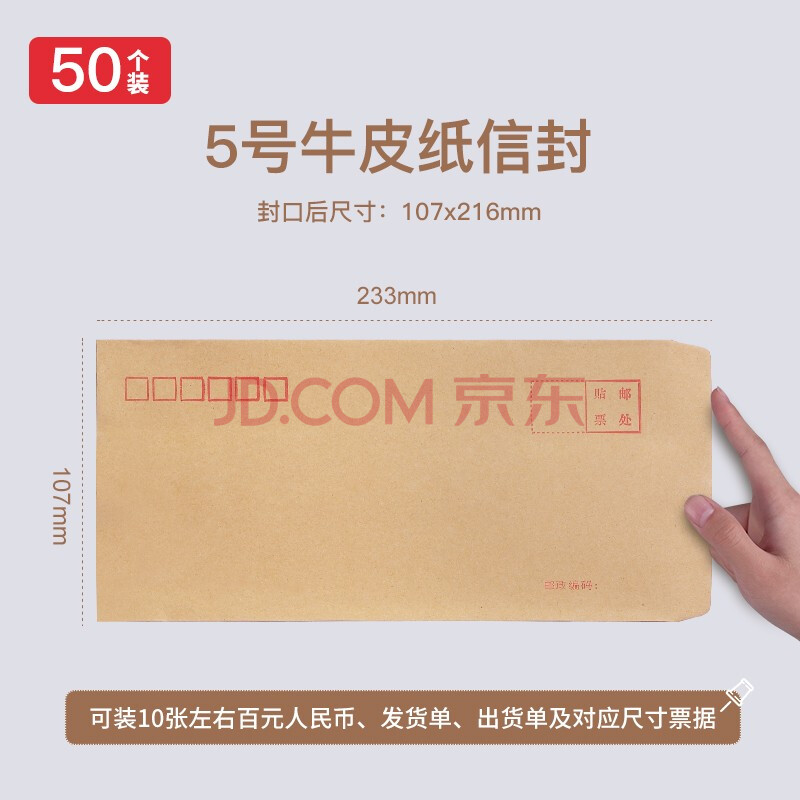 商品相册:金隆兴 5号牛皮纸信封 邮局标准信封袋发票收据文件袋资料袋办公用品信纸发票工资袋信封袋 50个/包 8286第1张/共8
