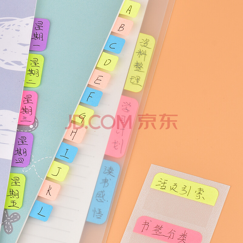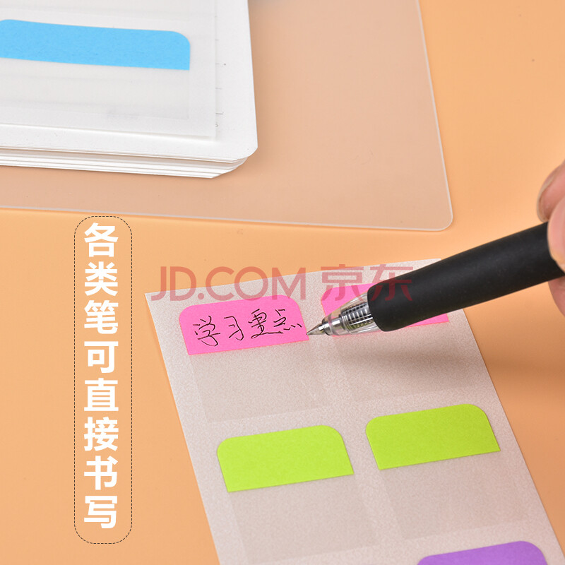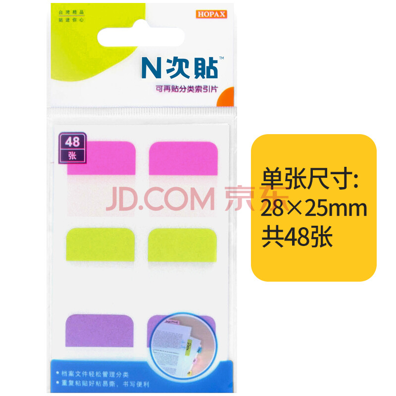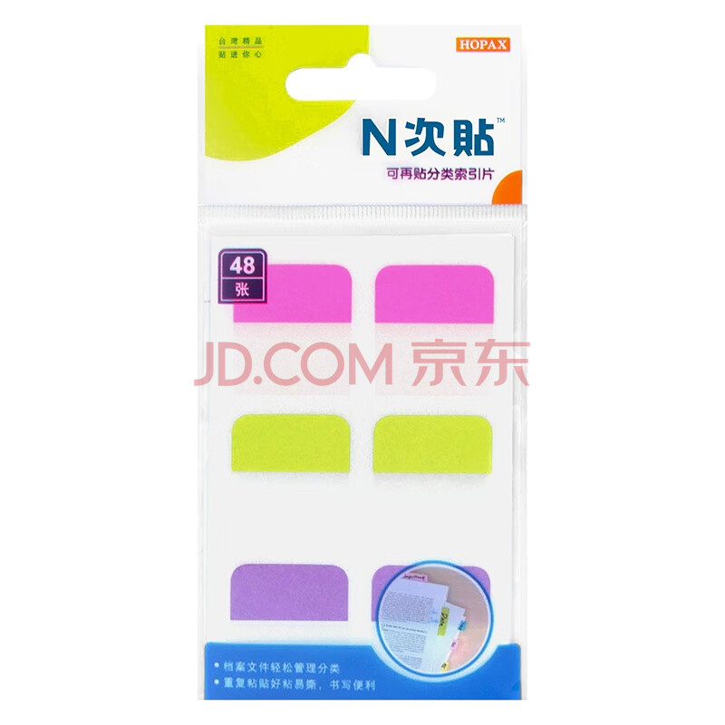 商品相册:N次贴(STICKN)荧光指示标签贴分类便签纸便利贴索引片25*28mm 纸标头易书写48枚3色34045第