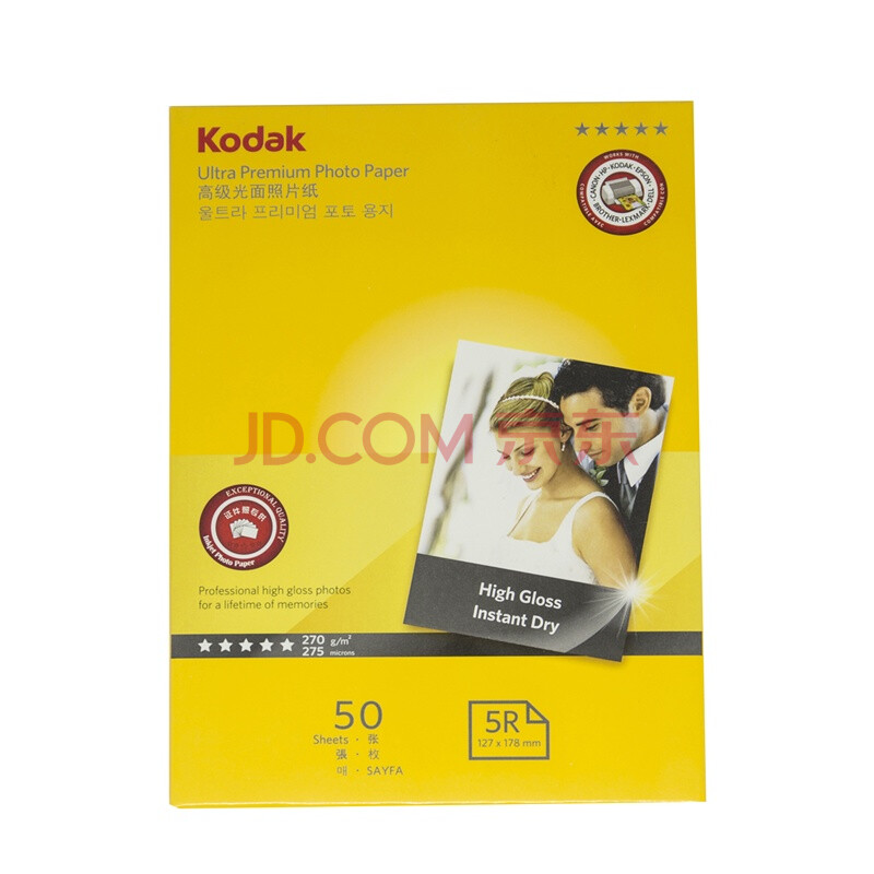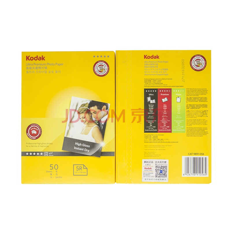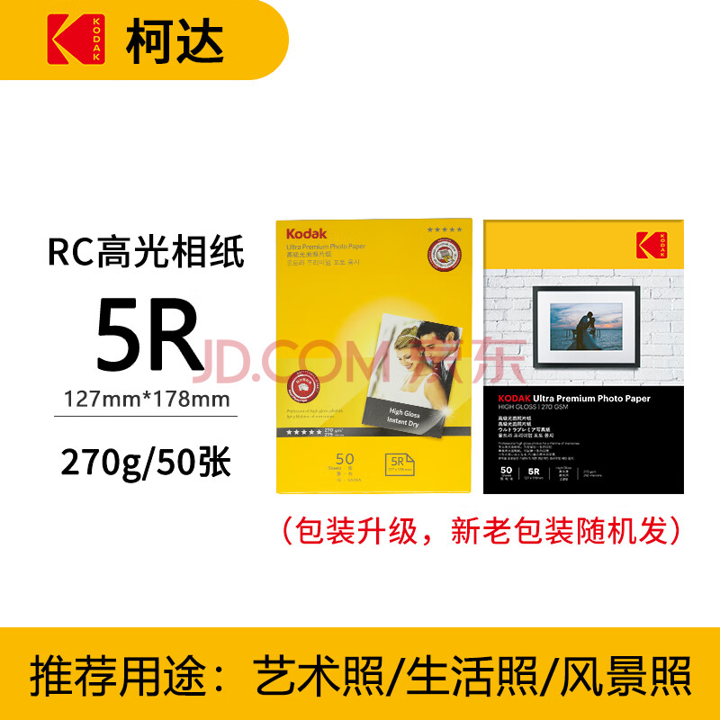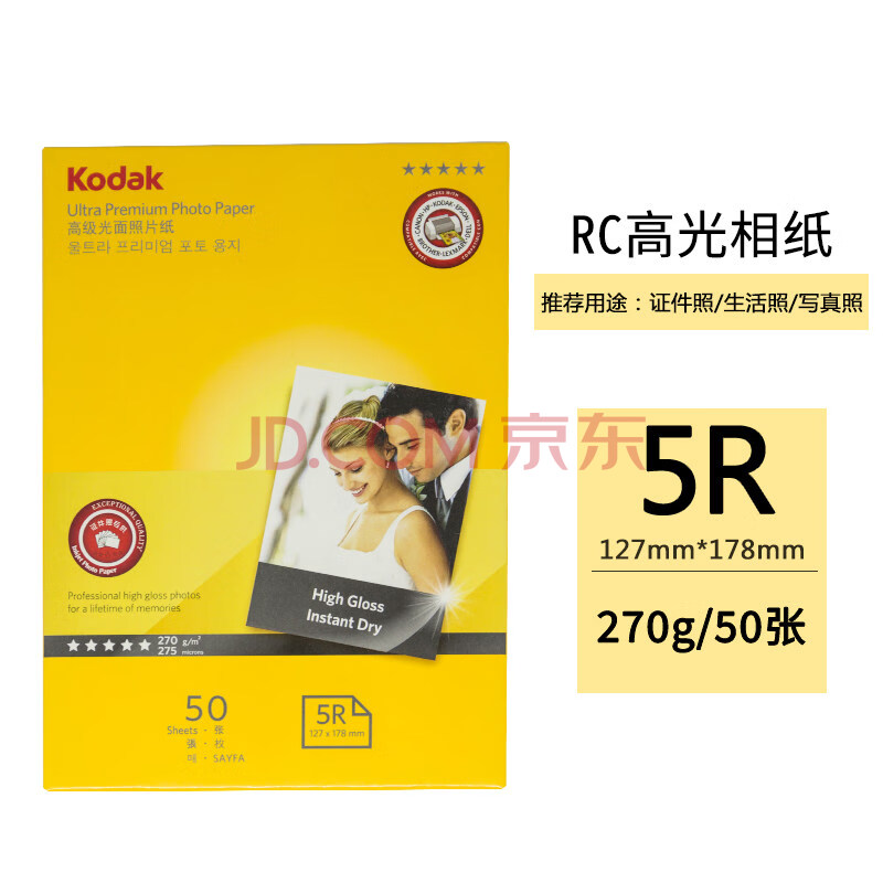 商品相册:KODAK柯达 5R/7英寸 270g防水RC高光面照片纸/喷墨打印相片纸/相纸 50张装 9891-056第