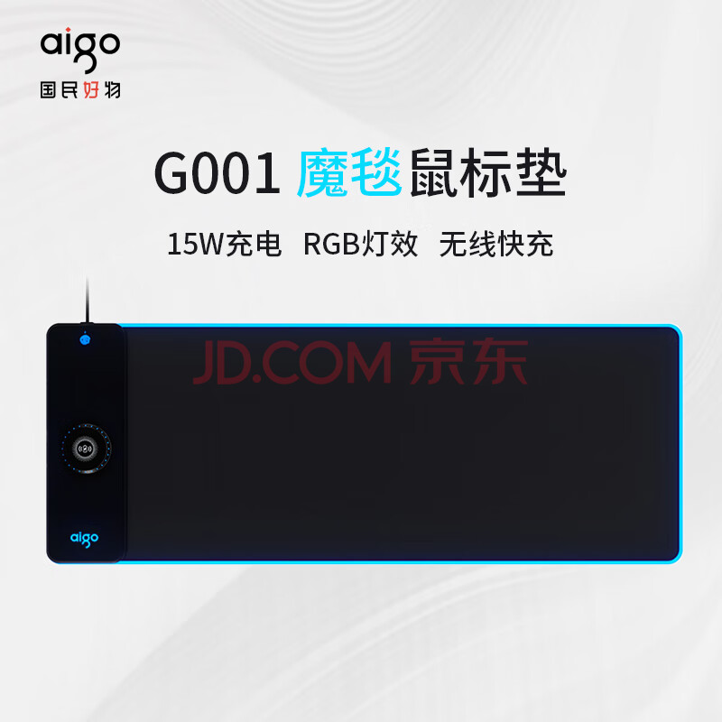 商品相册:爱国者(aigo)魔毯G001 鼠标垫 15W无线快充 可充电 RGB发光 大号电竞游戏桌垫第