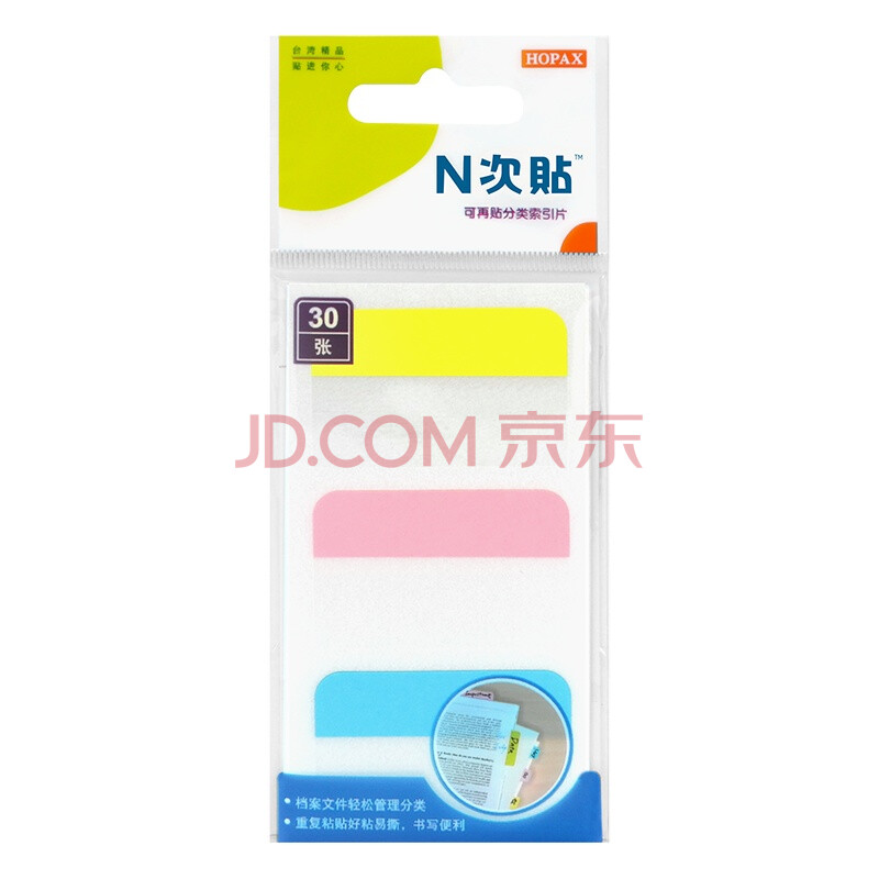 商品相册:N次贴(STICKN)荧光指示标签贴分类便签纸便利贴索引片45*28mm 纸标头易书写30枚3色34046第