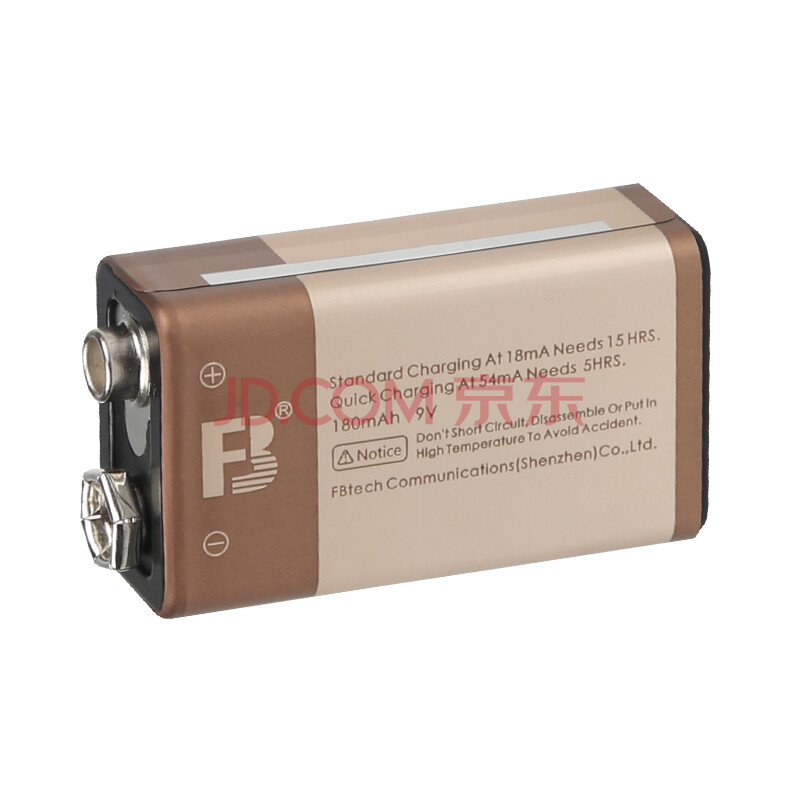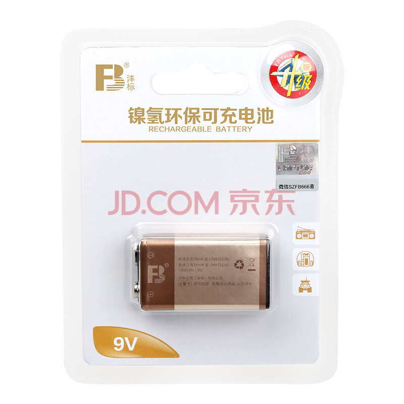 商品相册:沣标(FB)9V镍氢充电电池1节/粒 6F22九伏方形电池180mAh 适用万用表/无线话筒/烟雾报警器/玩具第
