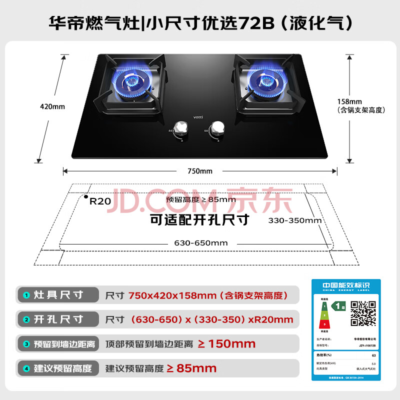 商品相册:华帝燃气灶嵌入式家用5.0kW大火力猛火灶煤气灶双灶台灶具i10072B【液化气商品】第