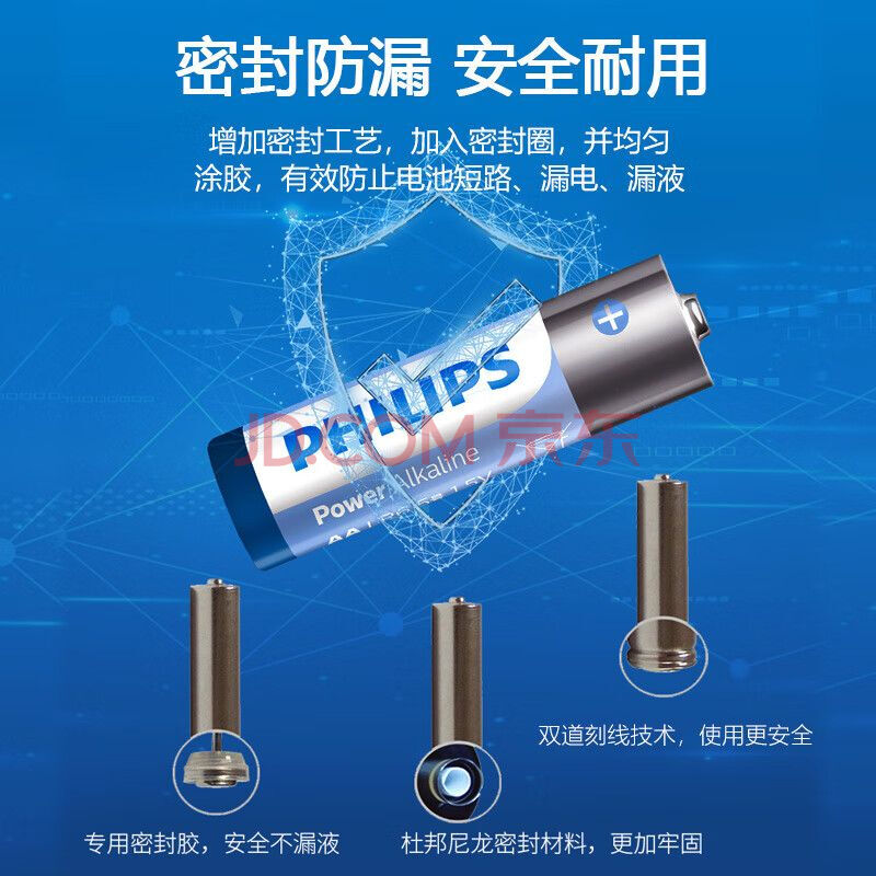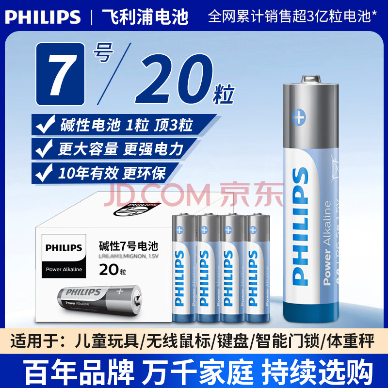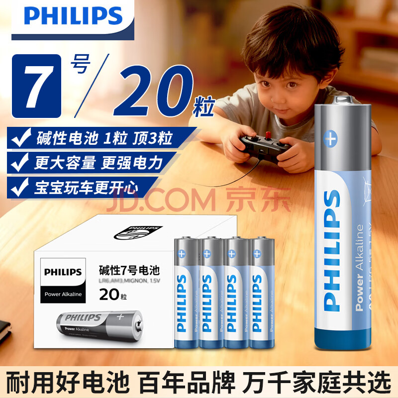 商品相册:飞利浦(PHILIPS)碱性7号电池20粒干电池 十年聚能锁电适用玩具鼠标智能门锁/指纹锁剃须刀血压计电池5号商超同款第