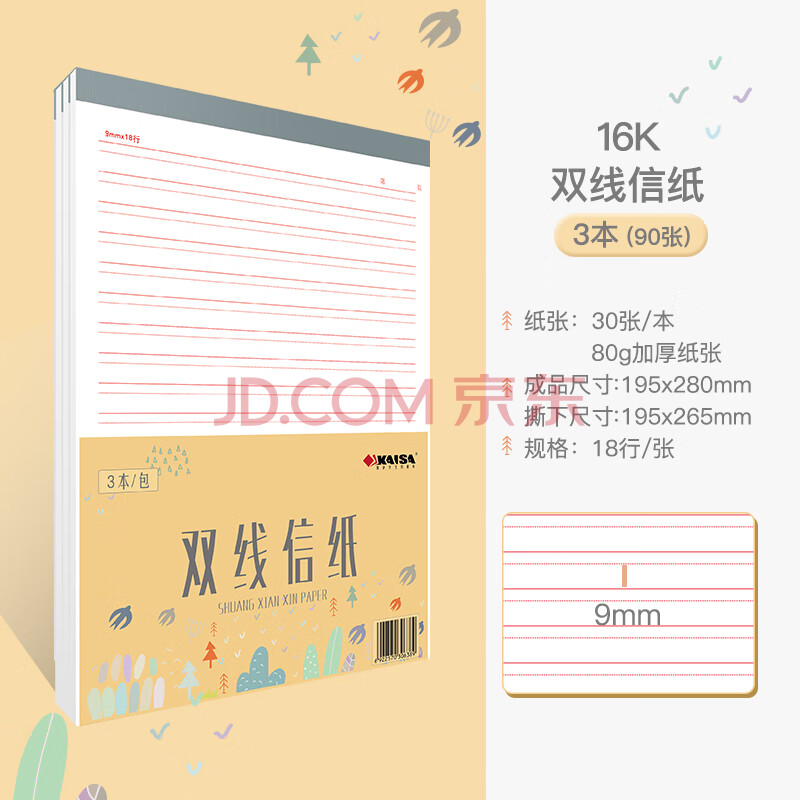 商品相册:凯萨(KAISA)16K/30张双线信纸3本装信稿纸加厚作文纸入党申请纸红色信签纸材料报告手写纸学生草稿纸第