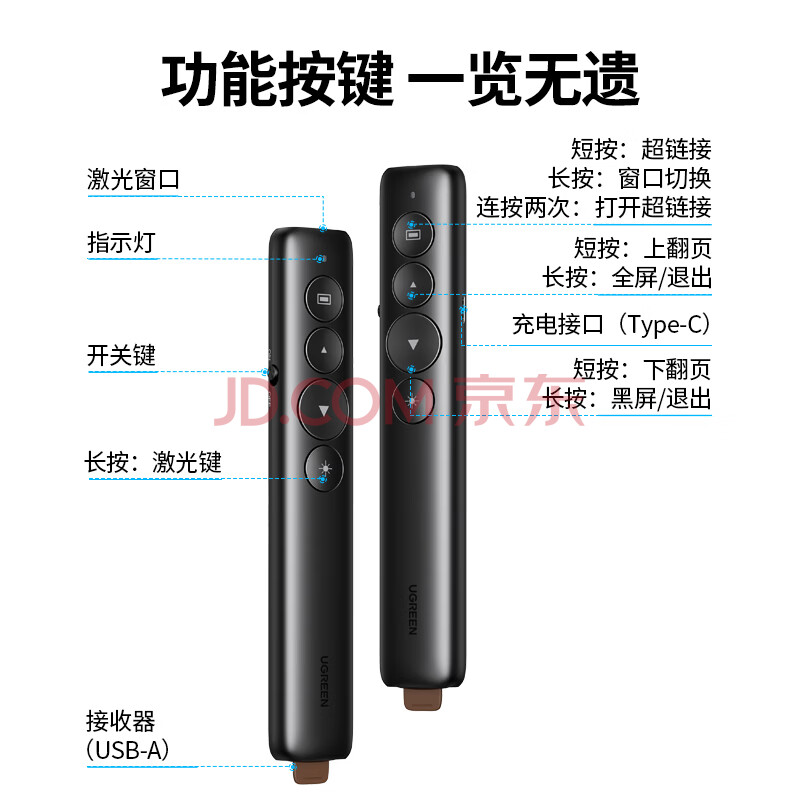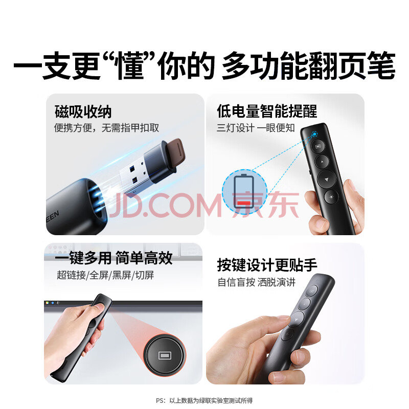商品相册:绿联翻页笔 红光激光笔PPT多媒体课件教学投影笔教师用演讲笔遥控笔 无线演示翻页器电子教鞭50654第