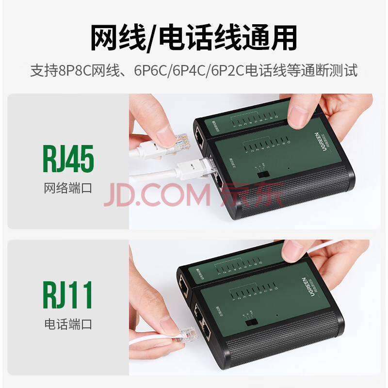 商品相册:绿联网线测试仪 多功能网线/电话测线仪 电脑网络水晶头电话线工程/家用智能信号检测通测试仪器通断器第