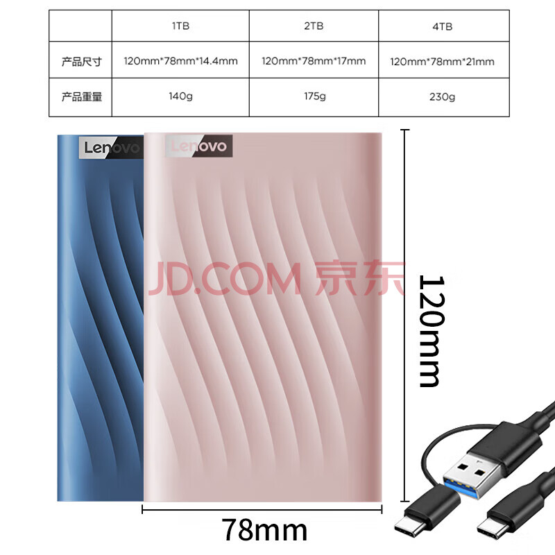 商品相册:联想(Lenovo)2TB移动硬盘 USB3.0 2.5英寸 机械硬盘 笔记本电脑 高速传输便携小巧 F309 Lite锆石粉第