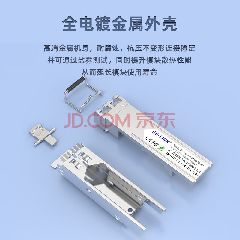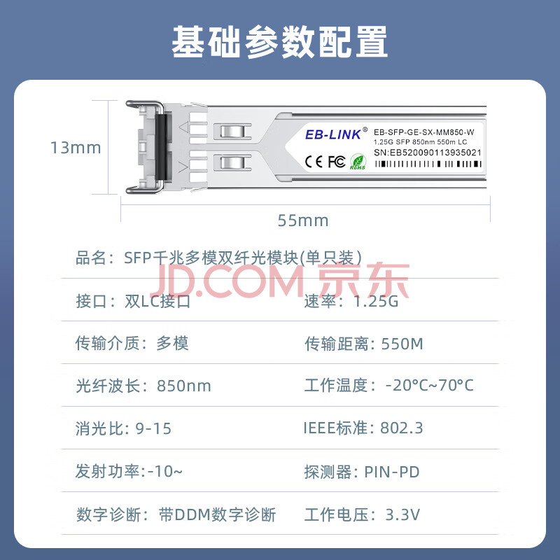 商品相册:EB-LINK EB-SFP-GE-SX-MM850-A SFP光模块1.25G带DDM千兆多模双纤850nm兼容华三H3C第
