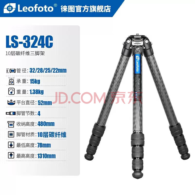 商品相册:徕图(Leofoto)三脚架 碳纤维便携轻便无中轴摄影摄像微单单反相机专业三脚架 LS-324C(单脚架) 第