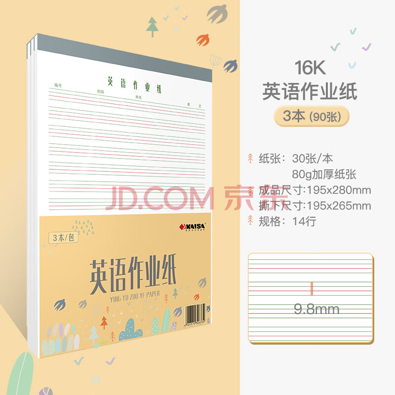 商品相册:凯萨(KAISA)16K/30张英语作业纸3本装加厚英文本小学初中高中英语纸单词听写默写纸四线三格本第