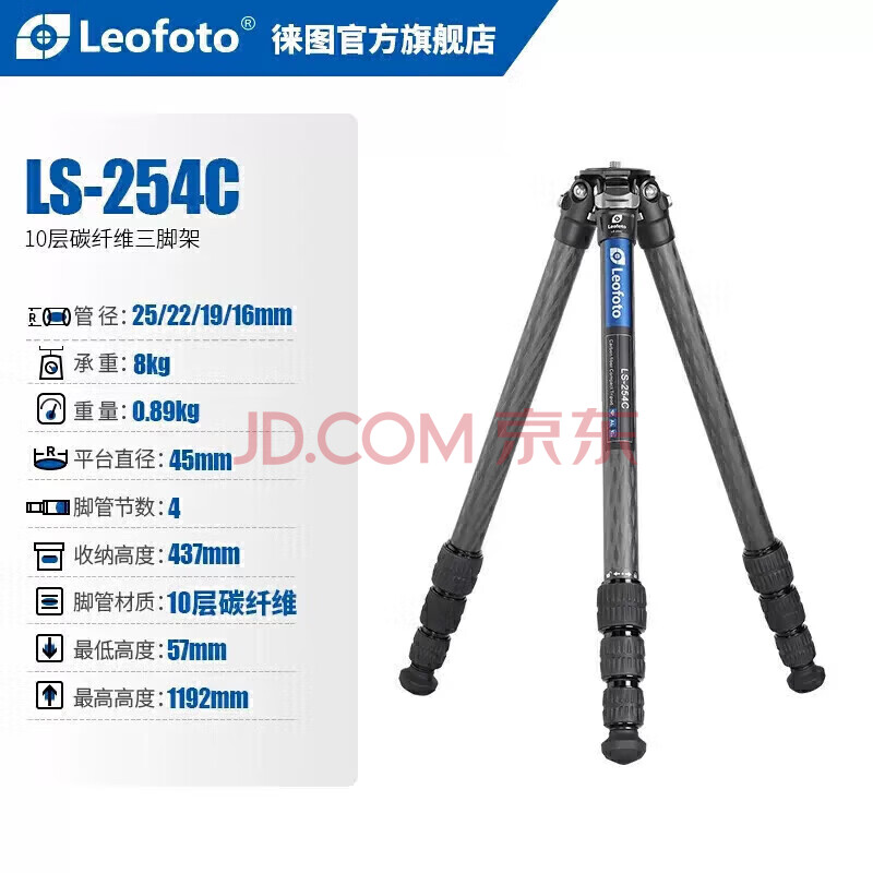 商品相册:徕图(Leofoto)三脚架 碳纤维无中轴摄影摄像稳定轻便相机单反微单三脚架 LS-254C(单脚架)第