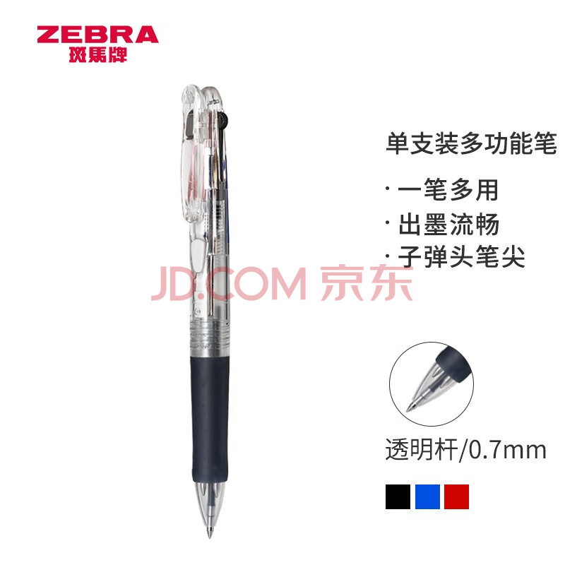 商品相册:斑马牌(ZEBRA)多功能三色圆珠笔 黑蓝红0.7mm多色笔 学生商务办公签字笔B3A3 透明色杆第