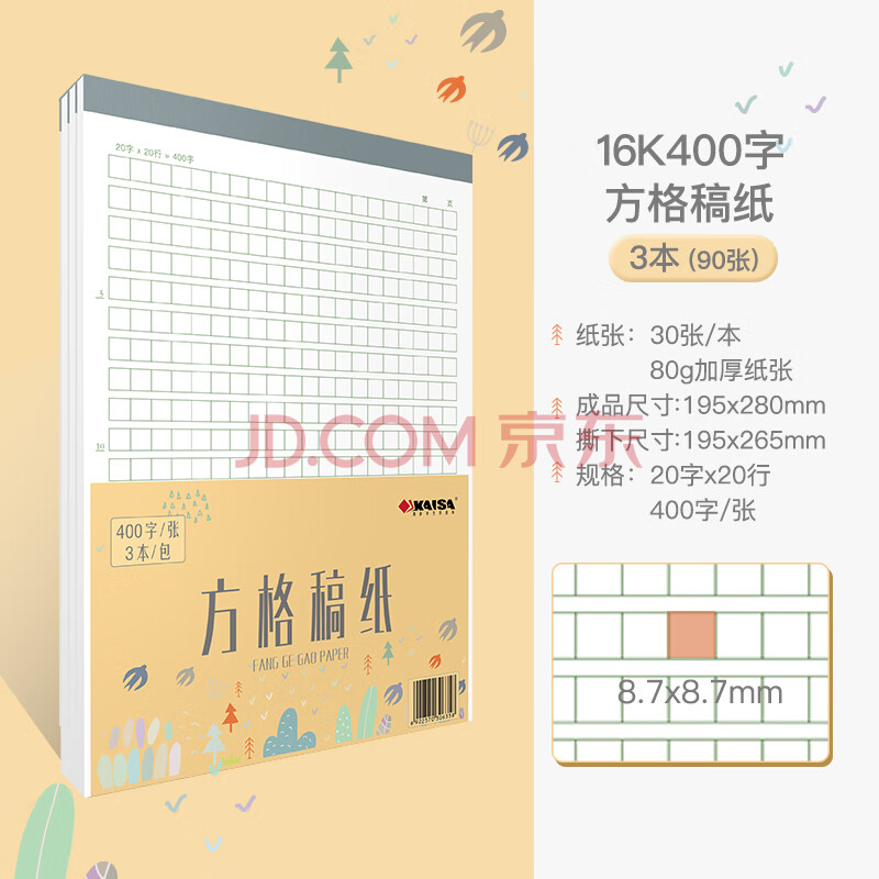 商品相册:凯萨(KAISA)16K/30张400字方格稿纸3本装作文纸400格小学生加厚文稿纸信纸绿格初中高中生作文本信签纸第