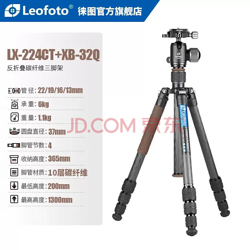 商品相册:徕图(Leofoto)三脚架云台 便携反折摄影摄像碳纤维球形云台双全景轻便旅行专业三脚架云台套装 LX-224CT+XB-32Q第