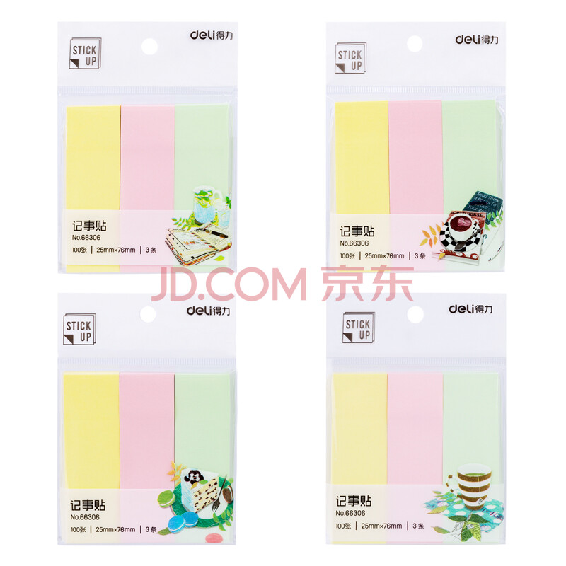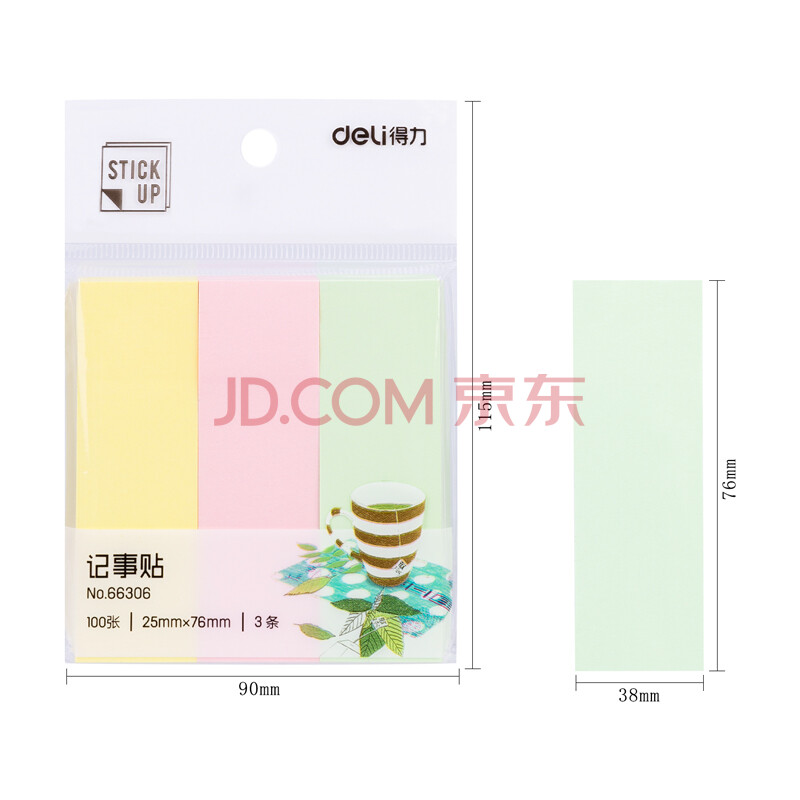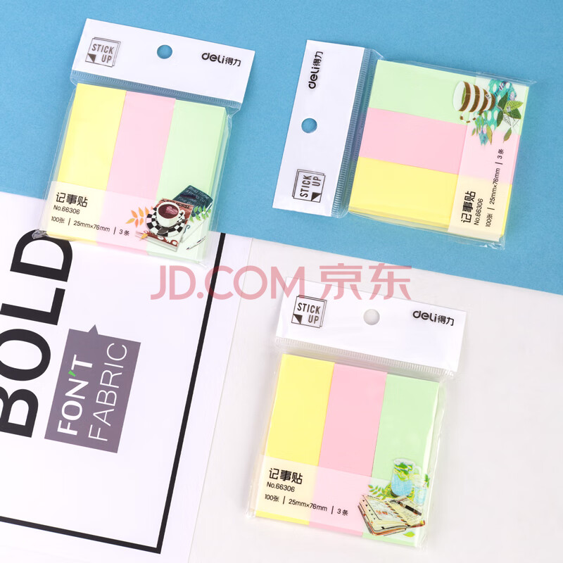 商品相册:得力(deli)300张3色分条便利贴便签纸 76*25mm记事贴66306第1张/共6