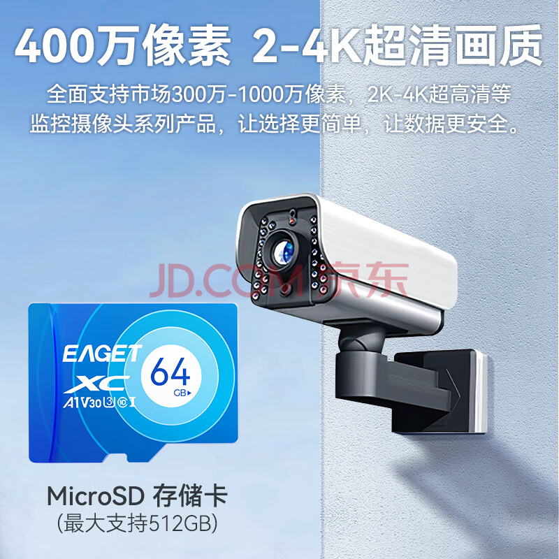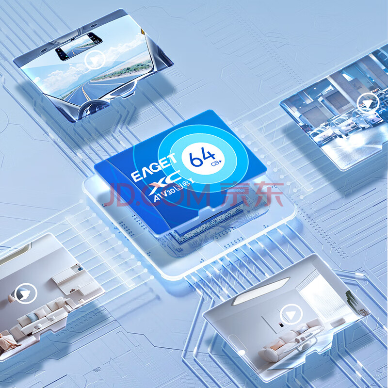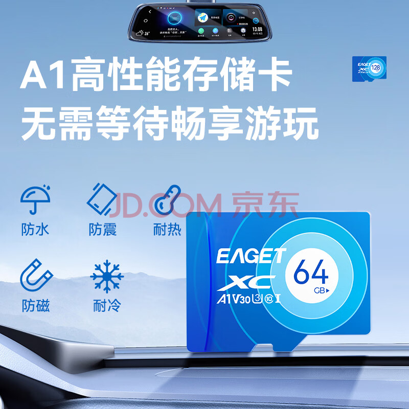 商品相册:忆捷(EAGET)64GB TF(MicroSD)存储卡 C10 商务蓝 适用华为小蚁萤石普联监控行车记录仪 高速内存卡第