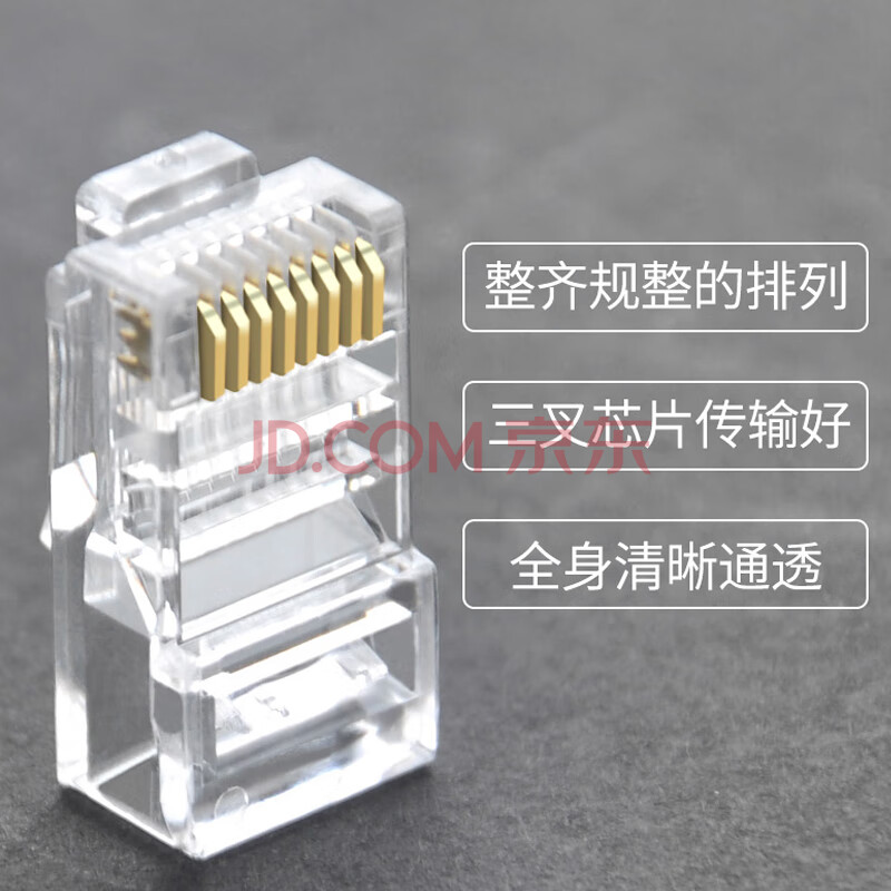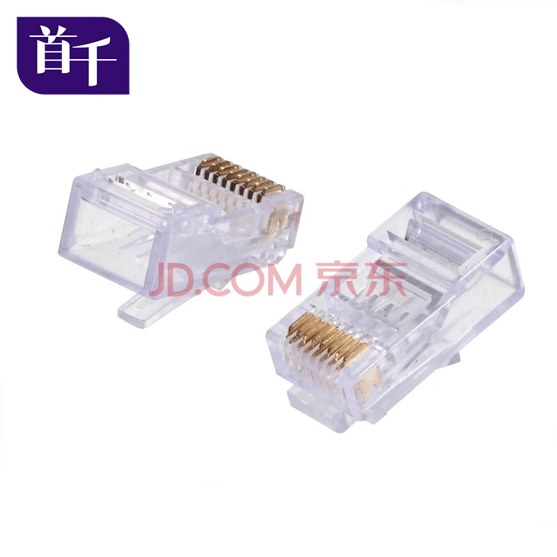 商品相册:首千(SHOCHAN)SQ-WD75J 超五类非屏蔽 3U镀金RJ45网络水晶头8P8C千兆电脑网线Cat5e类连接头传输性强 100颗第