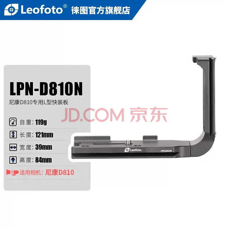 商品相册:徕图(Leofoto)竖拍板 雅佳标准云台快装板专用横拍竖拍快速切换L板 尼康D810专用L型快装板第