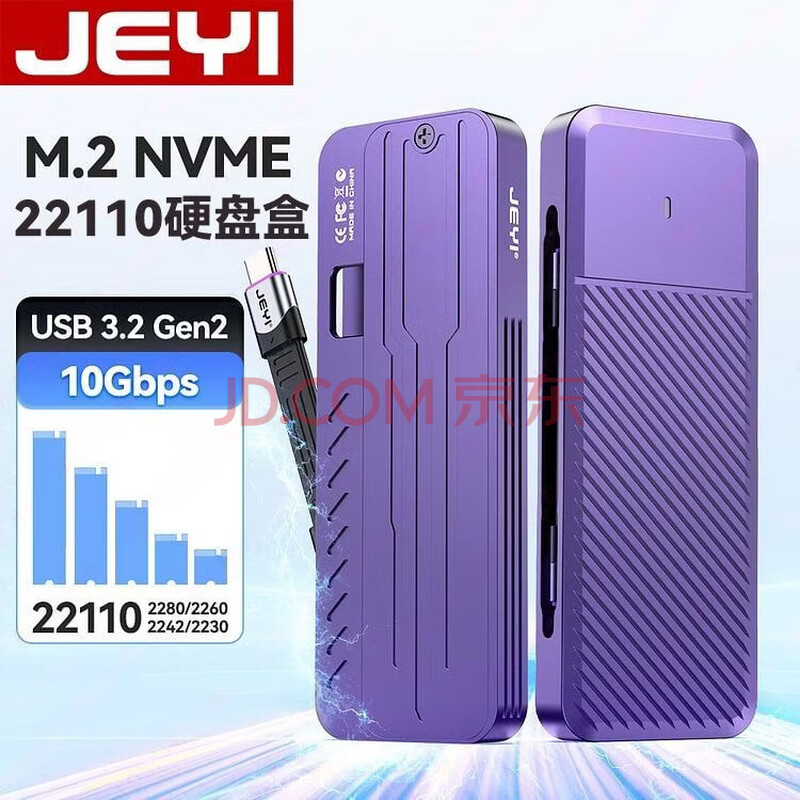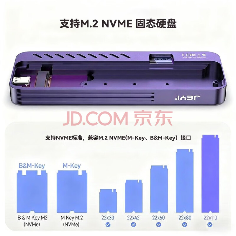 商品相册:佳翼(JEYI)M.2 NVME 110MM改进加高外置硬盘盒子 防震企业固态可用RTL9210B主控 移动硬盘盒第