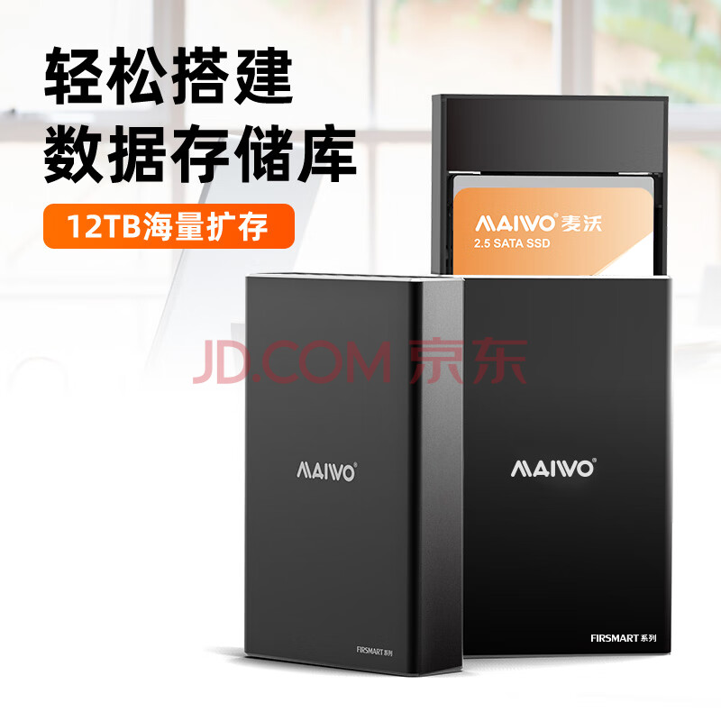 商品相册:麦沃(MAIWO)双盘位机械硬盘盒 带RAID磁盘阵列柜 铝外壳双盘位2.5英寸固态机械串口外置盒K25272C第