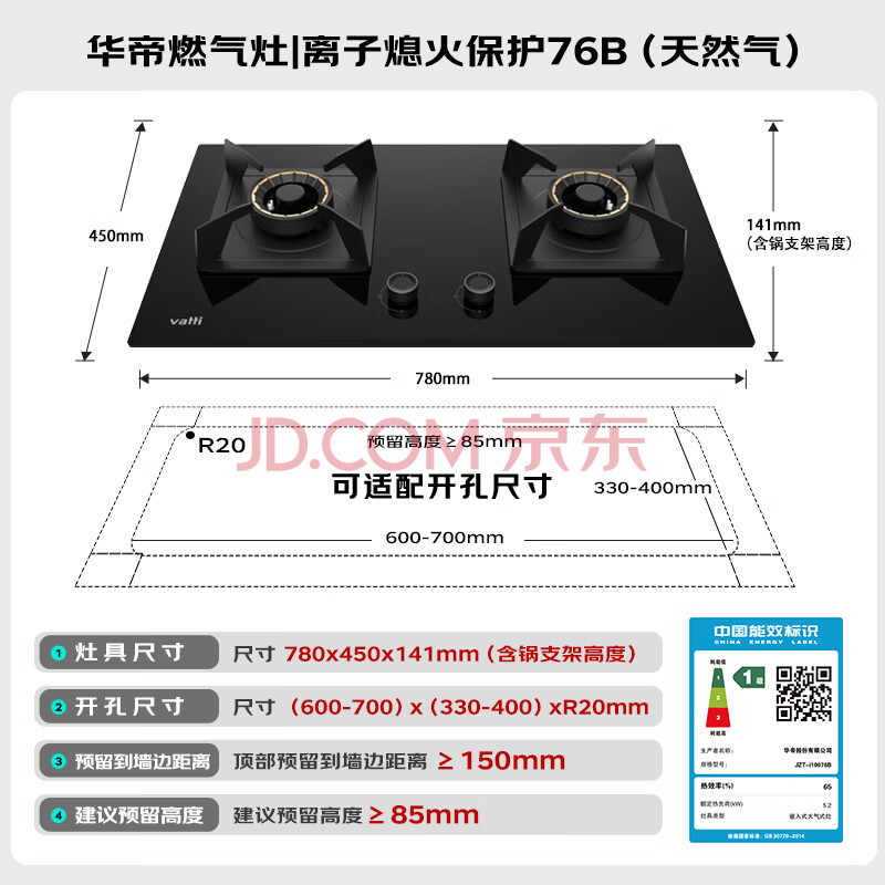 商品相册:华帝燃气灶天然气嵌入式双灶5.2kW猛火煤气炉灶台灶具i10076B 可拆卸炉头【天然气产品】第