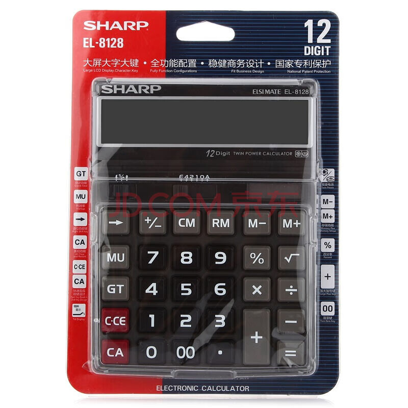商品相册:夏普(SHARP) EL-8128-BK 大屏大字大键商务办公计算器(晶砂黑)第