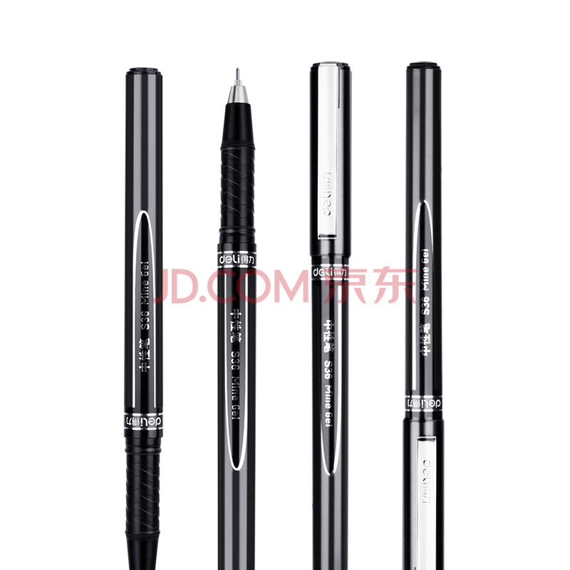 商品相册:得力(deli)0.5mm中性笔碳素签字笔 黑色 全针管12支/盒第