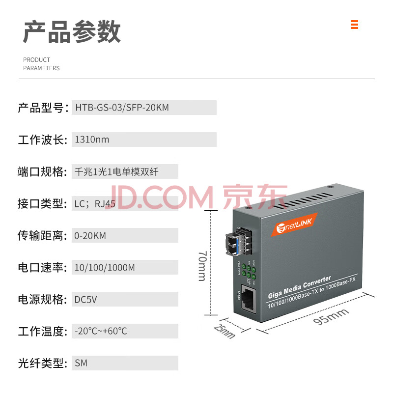 商品相册:netLINK HTB-GS-03/SFP-20KM 千兆单模双纤光纤收发器 SFP光电转换器 LC接口 一台第