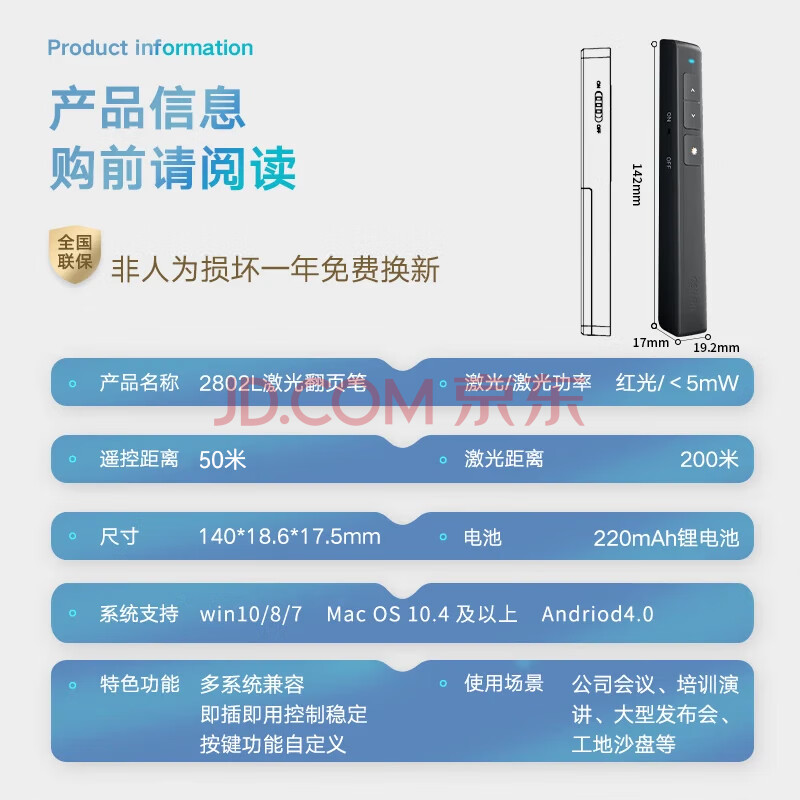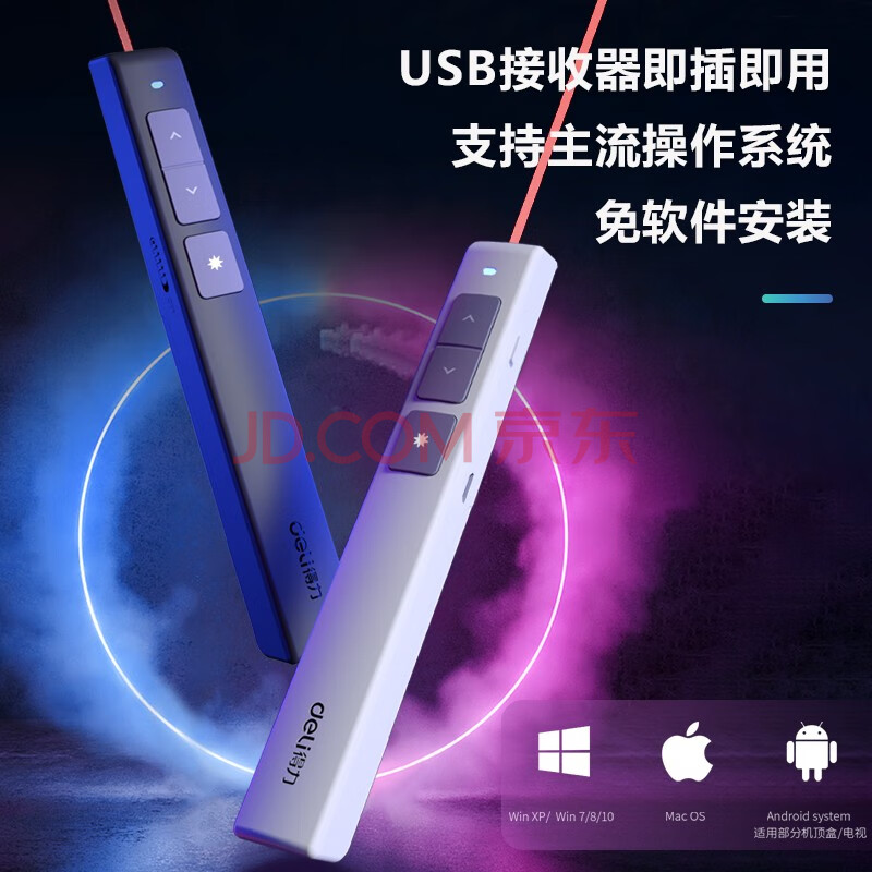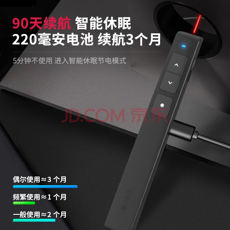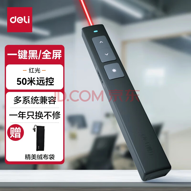 商品相册:得力(deli)激光翻页笔 360度控制 激光笔 教师充电款超链切换教鞭/无线演示器 ppt翻页笔 黑色 2802L第