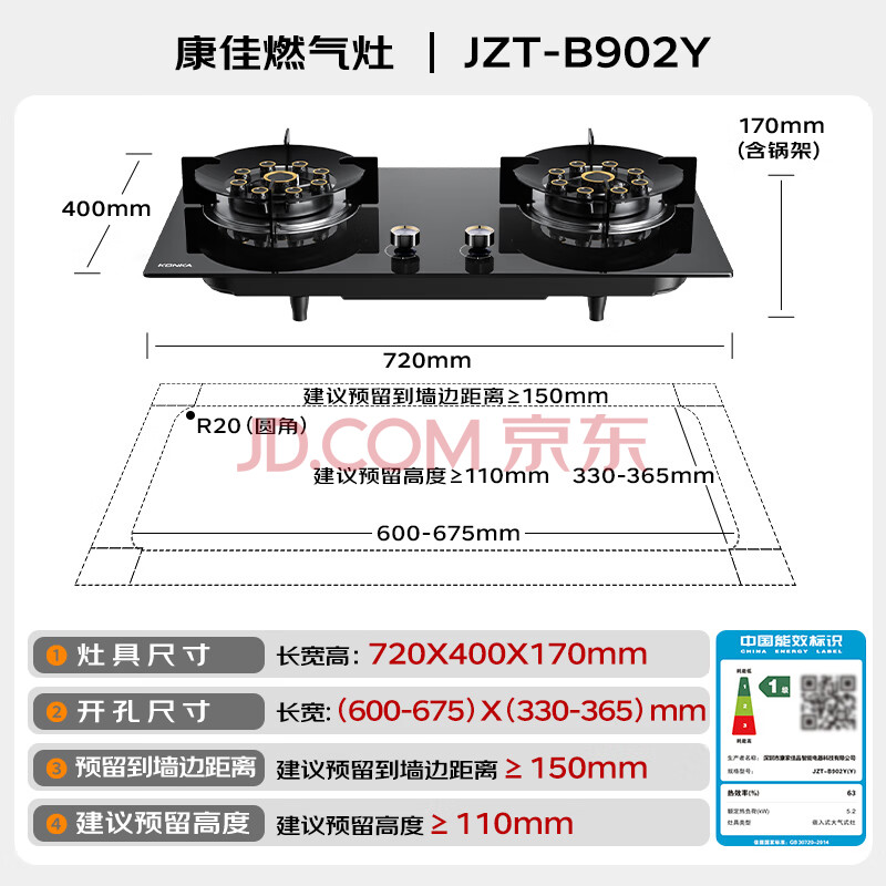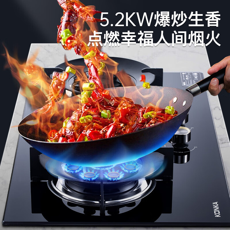 商品相册:康佳(KONKA)燃气灶煤气灶双灶具 九腔5.2kW聚能猛火铜制小火盖 易洁面板台式嵌入式上门安装 JZT-B902Y第