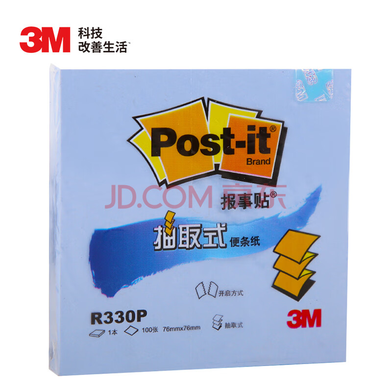 商品相册:3M 便利贴 报事贴/便条纸/记事贴/便签纸/便签本 办公用品 学习用品文具 抽取系列R330P-BL(蓝色)第