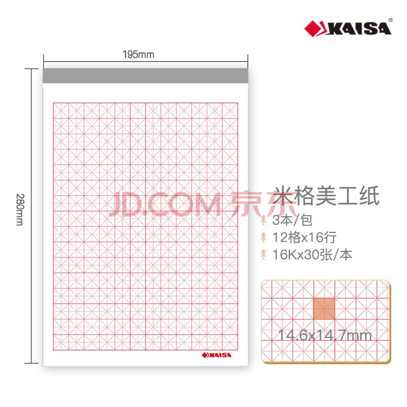 商品相册:凯萨(KAISA)16K/30张米字格美工纸3本装 硬笔书法纸钢笔字专用米字练字本字帖米格草稿本初高中生练字纸第