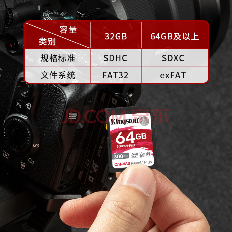 商品相册:金士顿(Kingston)64GB SD存储卡 U3 V90 8K 相机内存卡 高速sd卡大卡 读速300MB/s 写速260MB/s第