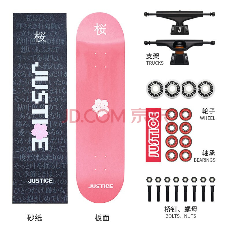 商品相册:JUSTICE沸点成人青少年专业男女生初学者代步动作新手双翘滑板限定板樱花第1张/共7