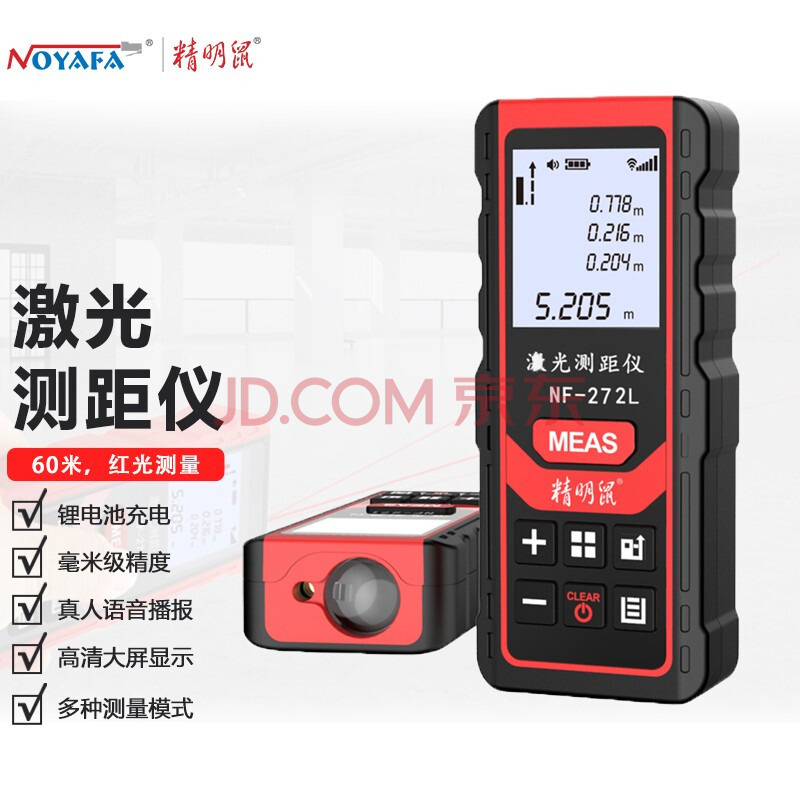 商品相册:精明鼠NF-272L 60米充电语音款 手持式激光测距仪 电子水平泡红外线测量仪 量房仪 电子尺 测量工具第