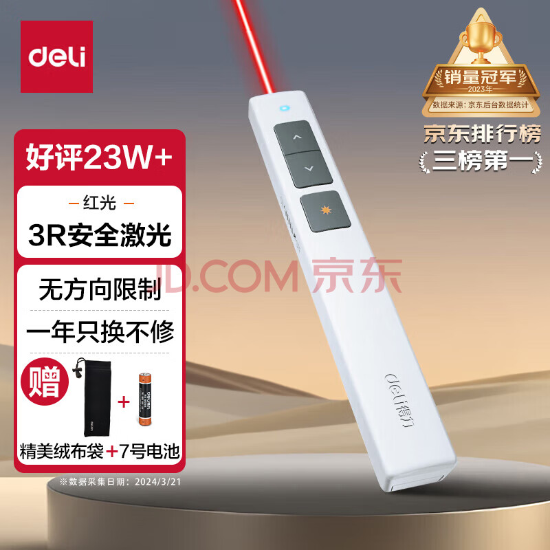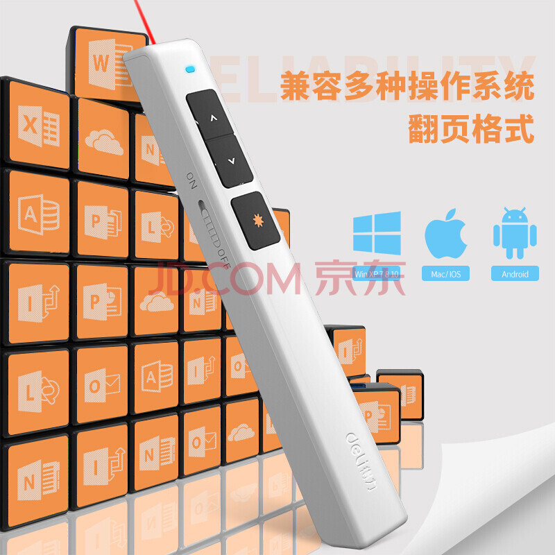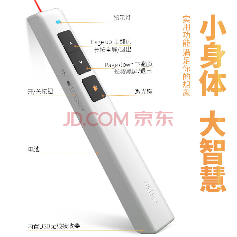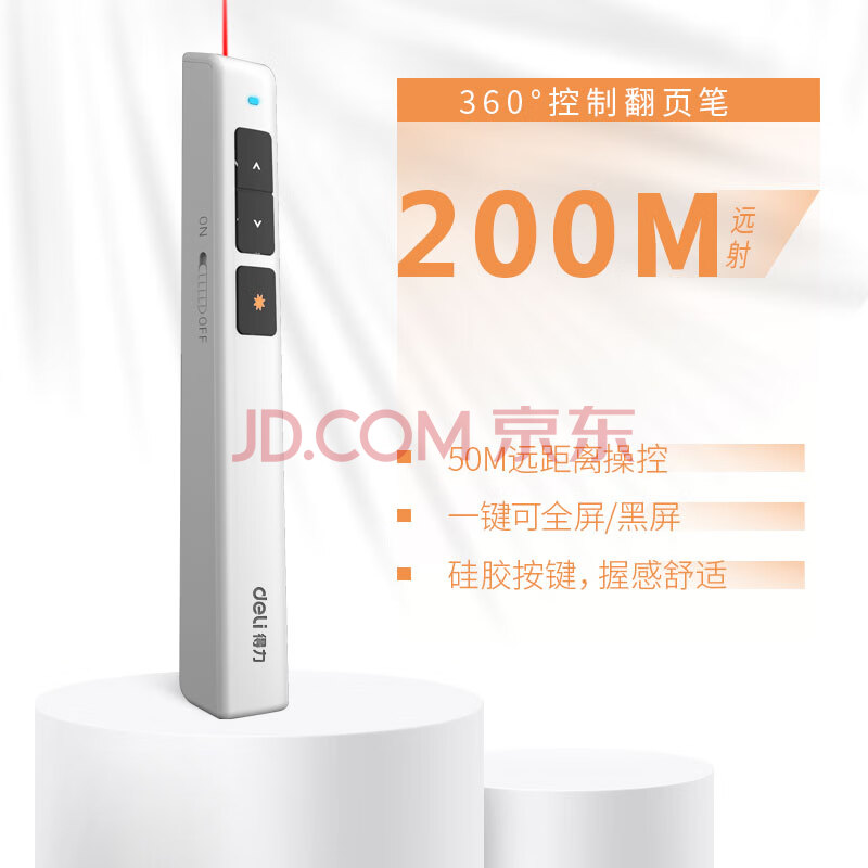 商品相册:得力(deli)激光笔 360度控制翻页演讲笔 ppt翻页课件笔激光翻页笔翻页笔教师用 逗猫笔红光 白色 2802第