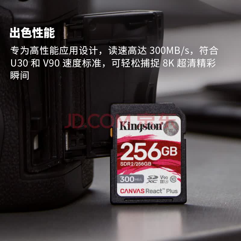 商品相册:金士顿(Kingston)256GB SD存储卡 U3 V90 8K 相机内存卡 高速sd卡大卡 读速300MB/s 写速260MB/s 微单/单反相机第
