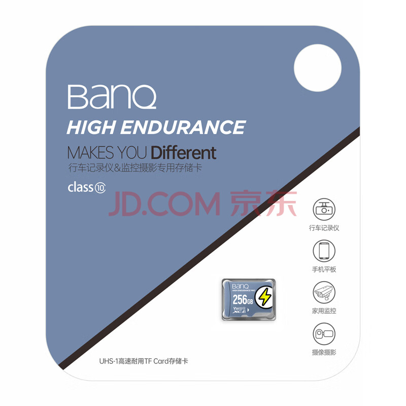 商品相册:banq 256GB TF(MicroSD)存储卡 U3 V30 A1 4K V60Pro版 行车记录仪&监控摄像头专用内存卡 高速耐用第