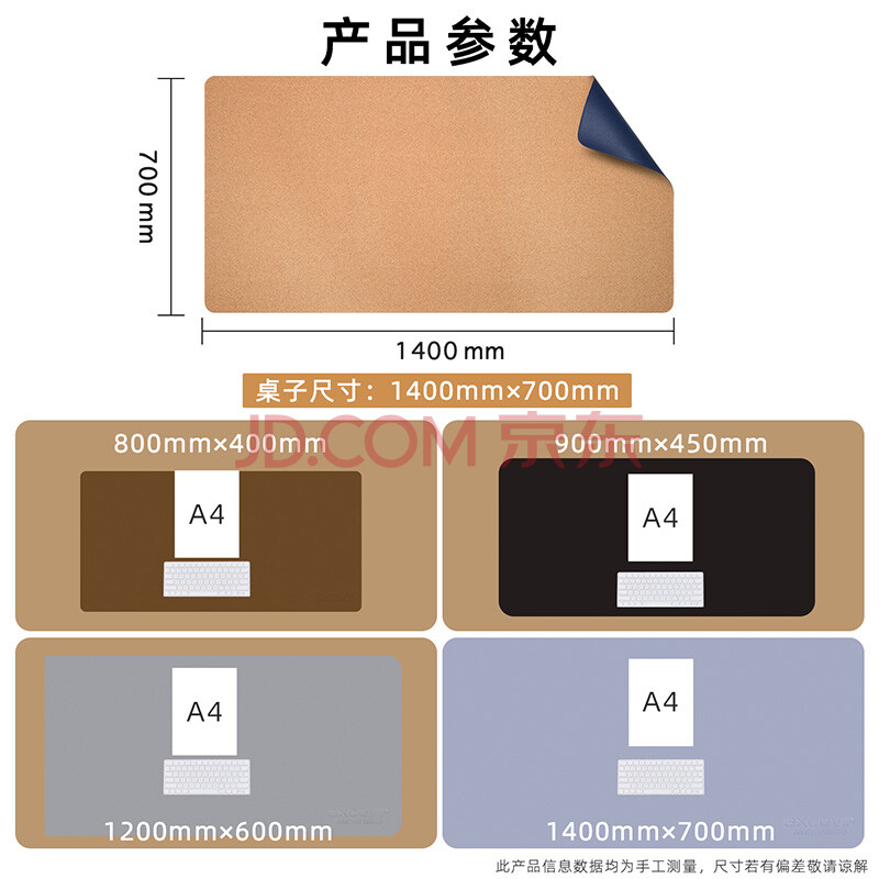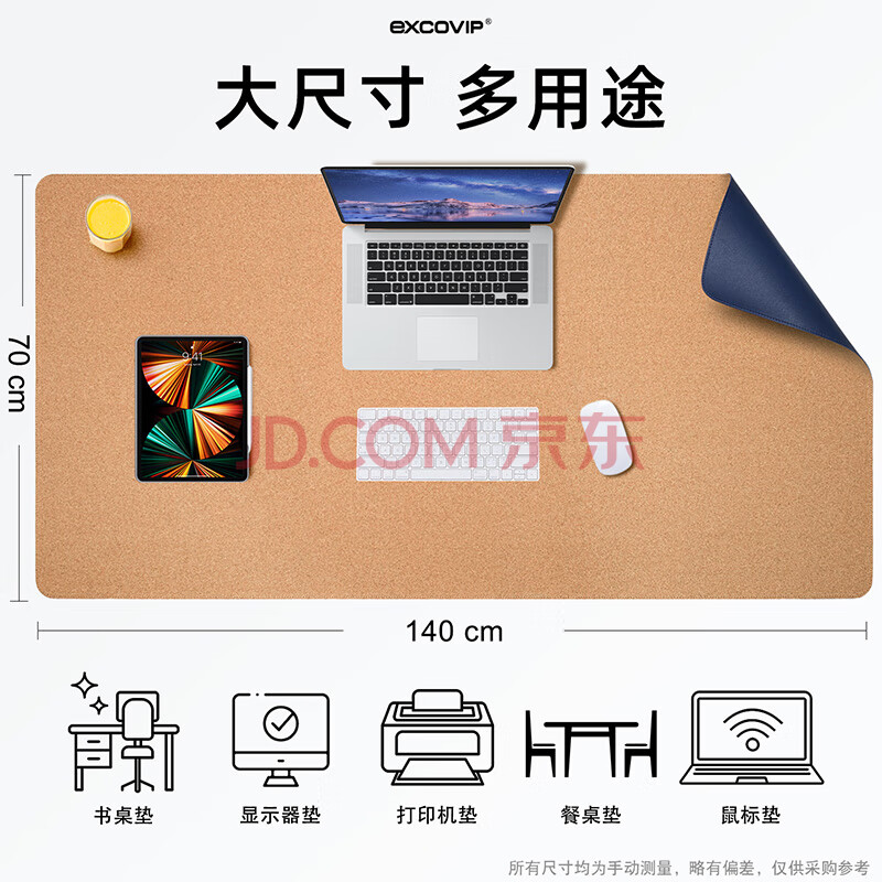 商品相册:宜适酷(EXCO)1.4米软木防水皮质鼠标垫超大号桌垫办公电脑写字台皮革桌布特大号游戏键盘垫子魅力蓝9778第