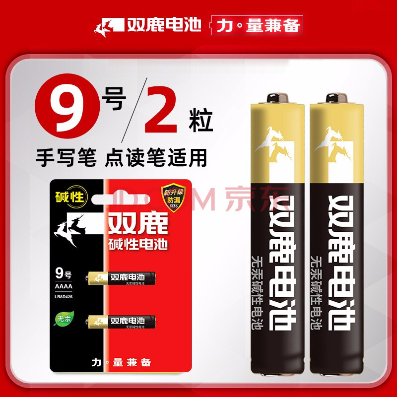 商品相册:双鹿 9号碱性电池2粒装 适用于电子玩具手写笔蓝牙耳机医疗仪器LR61/AAAA/LR8D425/25A/1.5V 2粒装第