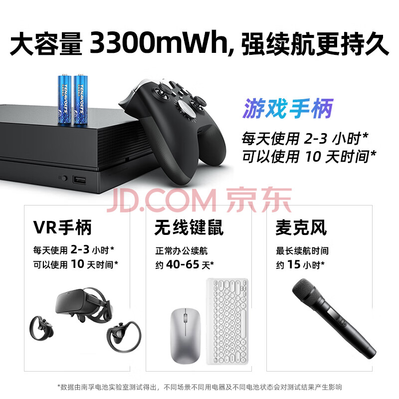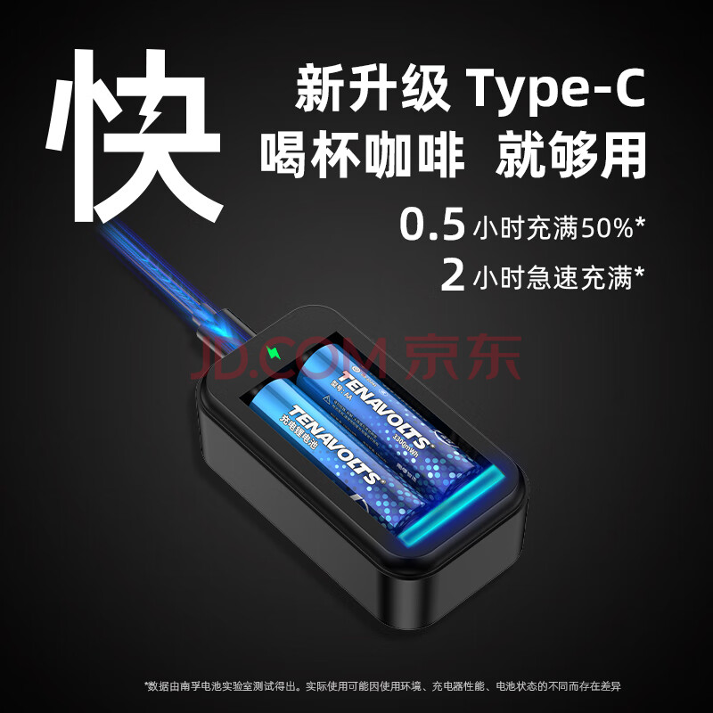 商品相册:南孚5号充电锂电池2粒套装 1.5V恒压快充 TENAVOLTS Type-C充电 适用VR设备/游戏手柄/吸奶器等 AA五号第